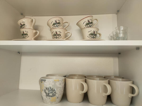 مع فرن، آلة صنع القهوة، غسالة صحون، ميكروويف، غلاية كهربائية، مجموعة من الأطباق: أكواب،